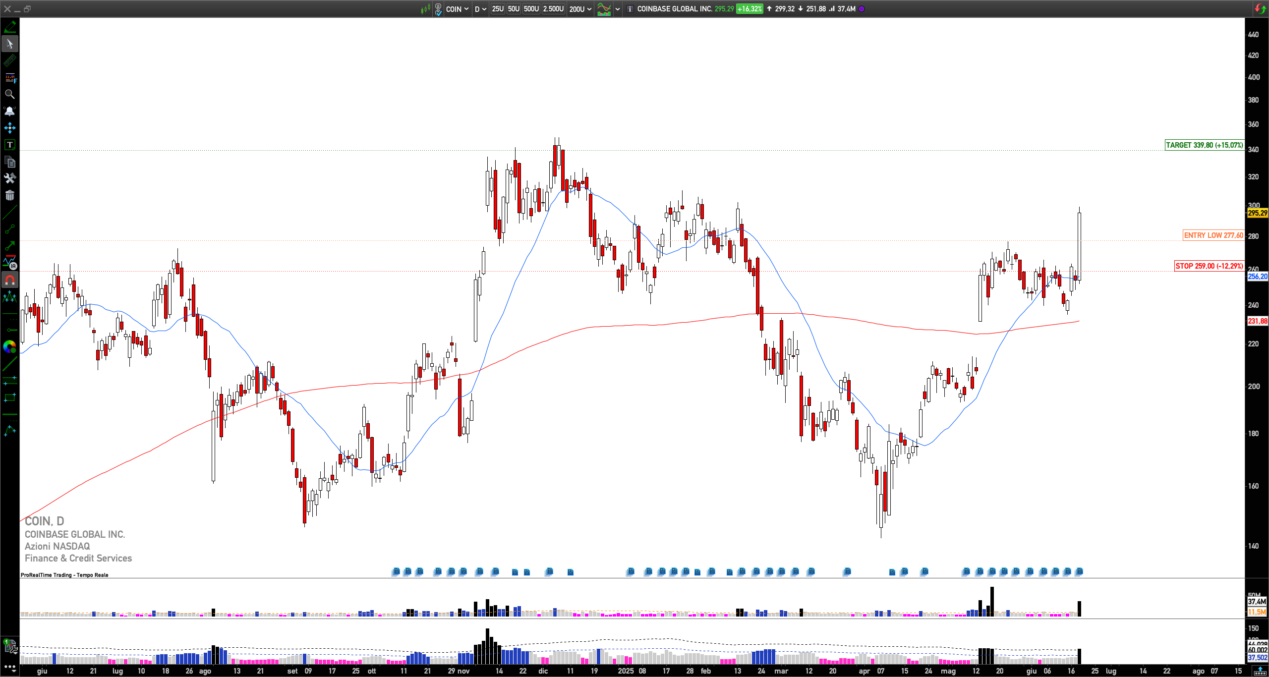› Long COIN: Coinbase breaks $280 resistance on Stablecoin Bill & Shopify rollout, eyes 2024 highs